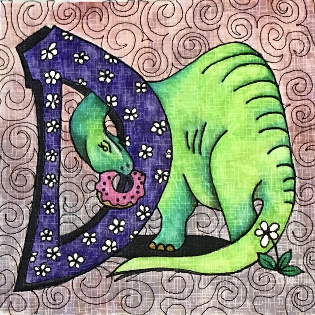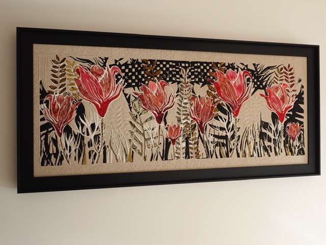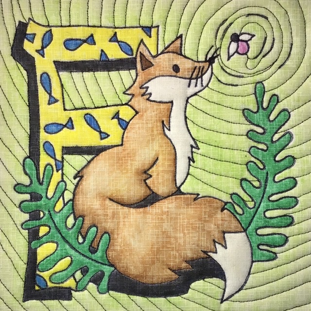 I have also been experimenting with Inktense Pencils. Helen Godden Designs has released an alphabet quick called Alphblocks. I drew the design onto cream cotton then coloured with the pencils. The colour was activated with fabric medium, very similar to painting with water colours. Each block is 8 inches square. After drying it is then quilted with black cotton to highlight the pattern. When completed it will be a wall hanging, assembled as quilt-as-you-go. The detailed quilting is an excellent way to practice fine free motion quilting.