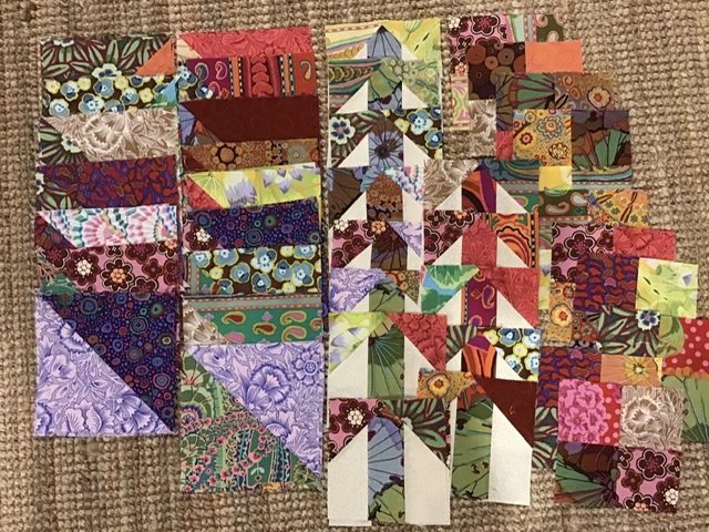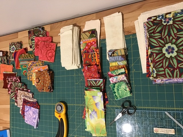 The next mystery quilt is using all my Kaffe Fassett scraps….looking forward to discovering the finished quilt design in a few weeks. The pattern is a Rachelle Denneny Design .. Mysolation Mystery Quilt.