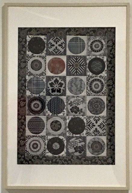 Our guest room needed some wall art. To match the Japanese inspired bed linen I searched my stash for Japanese fabrics in white and indigo. The circles are machine appliquéd onto contrasting 4 inch squares. Highlights were embroidered using cream sashiko thread. The machine quilting is very simple, in the ditch around the squares and outlining the circles. I also quilted over the fabric design in the border using a cream thread. The quilt was then framed. Really pleased with the end result.