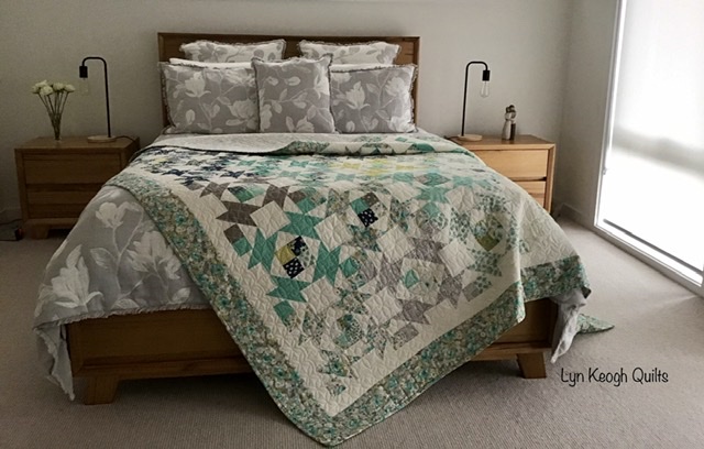 Here is the finished quilt made with the Flour Garden fabrics designed by Linzee Cull McCray for Moda Fabrics. The quilt pattern is called Canopy, from Clark Street Quilts. I added an extra border to make it fit a queen size bed. I love the quilt and it’s soft, crisp colours. It goes perfectly with the colour scheme in my bedroom. This will be a surprise for a special friend who gifted me the fabrics….I still have to finish a matching quilt for me.