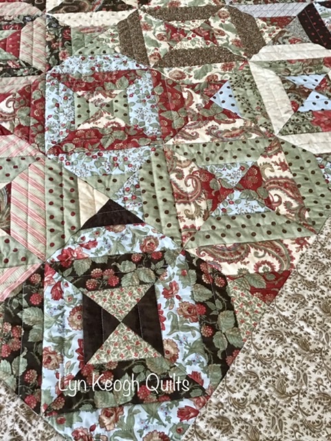 My goal is to finish some of those UFO’s hiding in my cupboards. This quilt top was made a few years back when I was determined to use up all the jelly rolls I had collected. This pattern is called ‘Garden Trellis’ from the book ‘Jelly Roll Quilts’ by Pam and Nicky Lintott. I have finally finished the quilting using straight line quilting with the aid of a ruler, following the pattern lines. The fabric range is Peace on Earth by 3 Sisters for Moda.