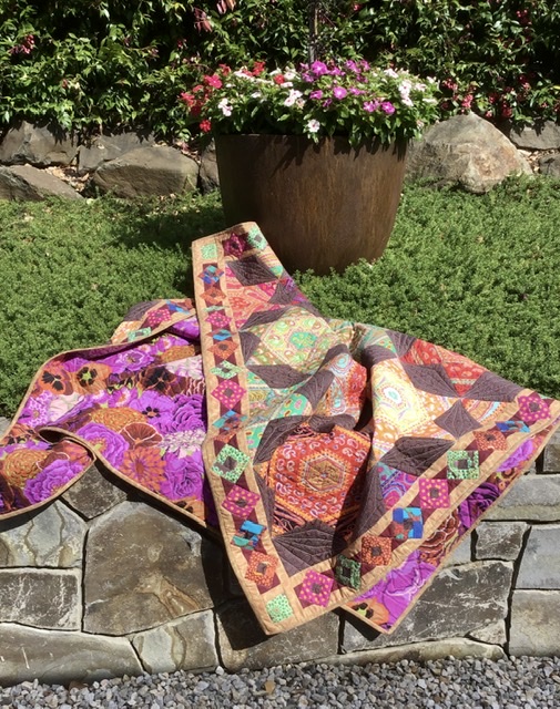 I tried to keep the quilting simple as the Kaffe Fassett fabrics are so beautiful and vibrant, they need to shine. It is quilted with Superior Threads Magnifico, colour Elegante. All in the ditch and straight line quilting.
