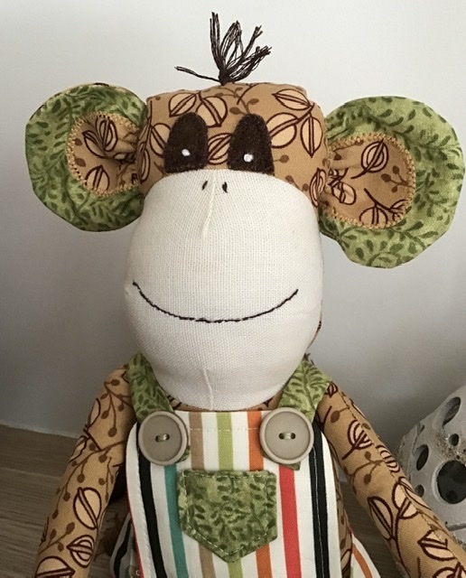 I was asked to make a gift for a newborn baby boy. Here is my cute monkey in his striped overalls. I used a pattern designed by Melly & Me called Mini Magoos. We are still in Covid lockdown here on the New South Wales South Coast so all the fabrics and requirements came from my stash. It was a fun project to make and I think he has his own personality.