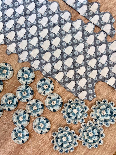 On the home sewing front I have been dabbling with several projects. I have designed another needle turn project, which is slowly growing, with lots of fussy cutting. It is enjoyable seeing it come together.