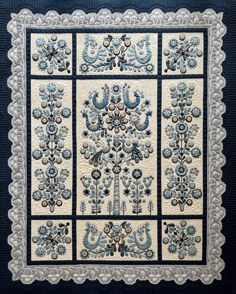 I feel the lace adds another dimension to the pattern and enhances the appliqué work. Very pleased with the finished quilt.